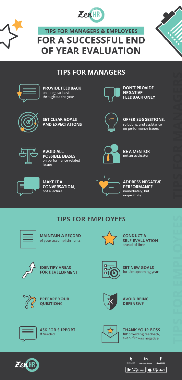 The annual employee performance process is the assessment and review of the performance of each employee, and it’s usually done at the end of the year. The purpose of this process is reminding each employee of his/her role in the company and what the management expects from each employee, and at the same time, it helps managers make fair and objective decisions when it comes to promotions, pay raises, and layoffs. ZenHR provides both managers and employees with some tips to make the most out of this critical process.