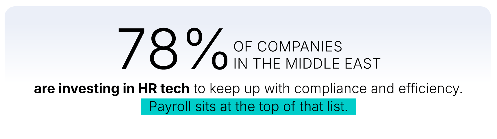 78% of companies in the Middle East are investing in HR tech to keep up with compliance and efficiency. Payroll sits at the top of that list.